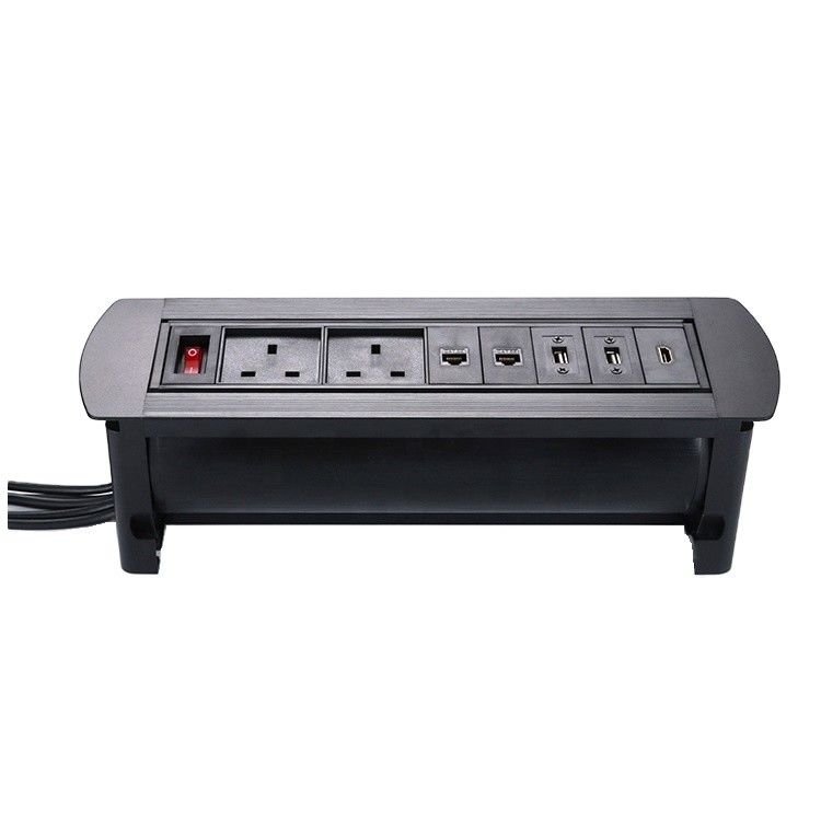 Flip Conferentietafel Desktop Power Outlet Tabletop Socket Standaard Aarding Mat Zwart