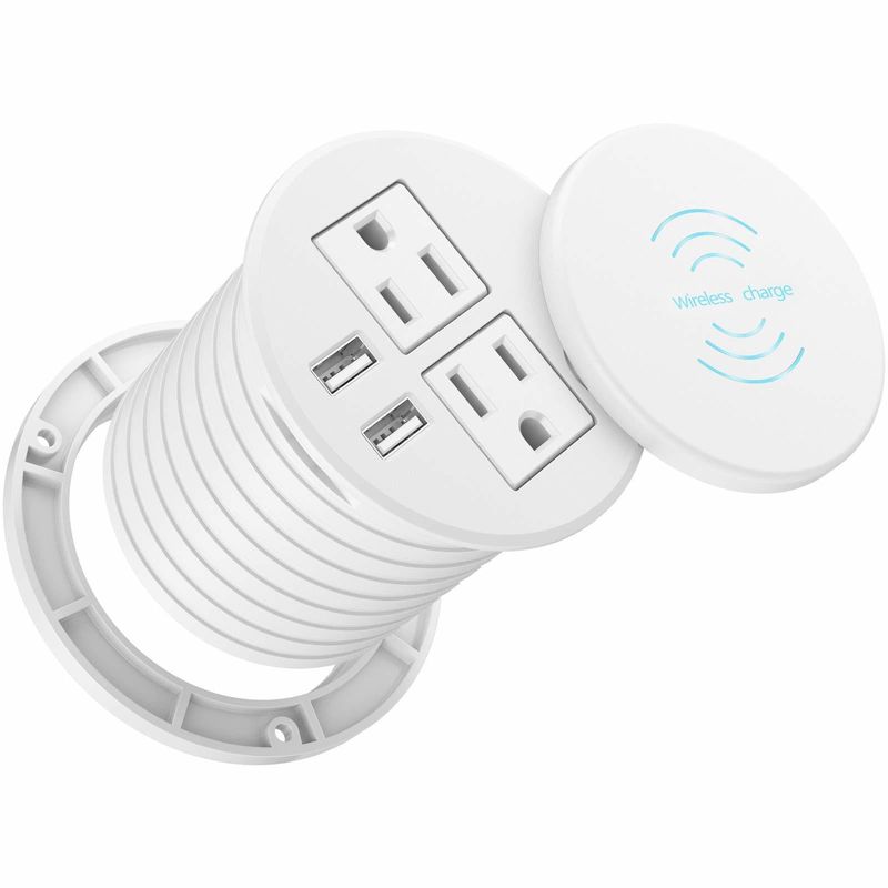 Desk Recessed Power Outlet met draadloos oplader en 2 USB-poorten 3 inch Configuratie